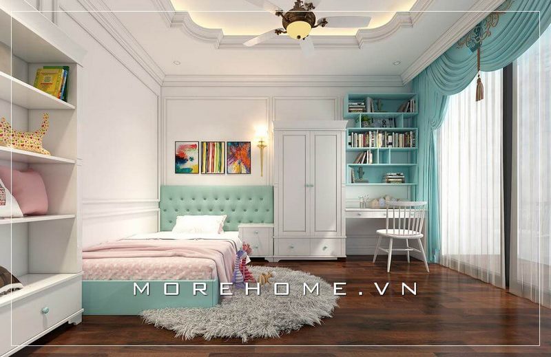 Chủ đề trang trí nội thất phòng ngủ của bé gái hiện đại tại chung cư cao cấp được nêu ra.